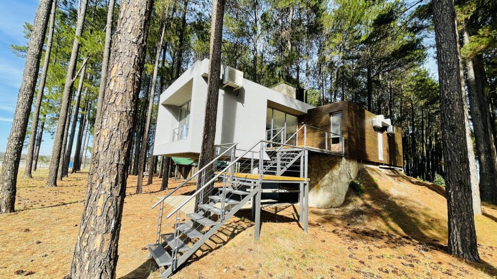 Situada sobre un médano de arena, rodeada de un entorno natural de pinos, a solo 20 metros de la orilla del río y del sector de piscina.
